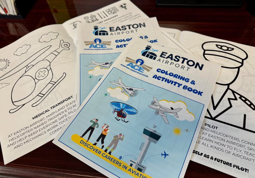 We are proud to present the Easton Airport Aviation Career Education Coloring & Activity Book! Designed in-house, this book offers a fun way for kids to learn about the diverse careers found at an airport through engaging activities and coloring pages. Parents will also learn about all the ways Easton Airport benefits our community and supports the local economy.