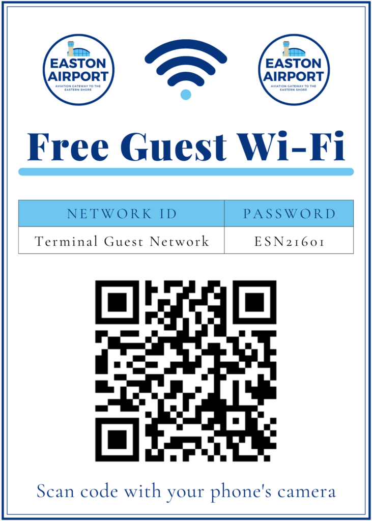 Easton Airport now features free public Wi-Fi in the terminal building.