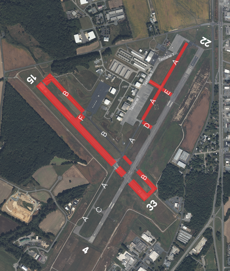 >Significant Taxiway Closures: Portions of Taxiway A, B, D, and E are closed. Aircraft should expect to taxi via Taxilane T (Ramp area between Terminal Building and Easton Jet). Users and Businesses are reminded to keep the Taxilane clear and expect a high volume of aircraft taxiing through the ramps.
