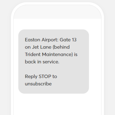 The Airfield Modernization Program is slated to begin by the end of 2023. In addition to emails and Notice to Air Missions (NOTAMS) notifications, Easton Airport is now implementing text notifications as we prepare for the multi-year improvement projects. Members of the airport community, and beyond, can now enroll their cell phone numbers to receive airport updates regarding construction, maintenance notices, project schedules, and more.