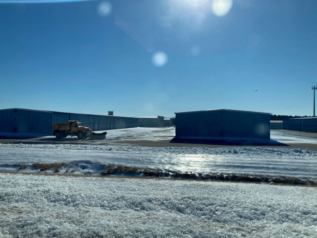 • Our crew has been working in the T-Hangar areas clearing ice.