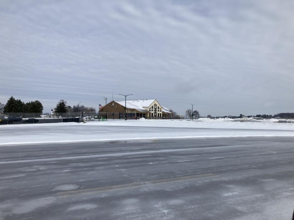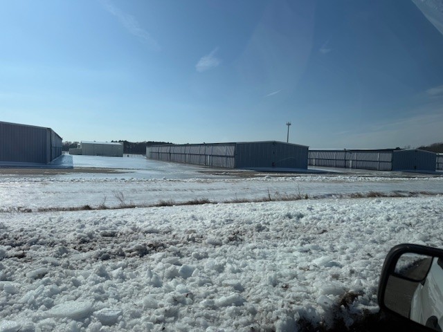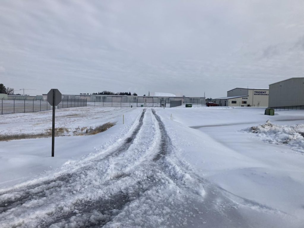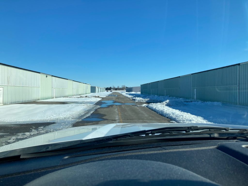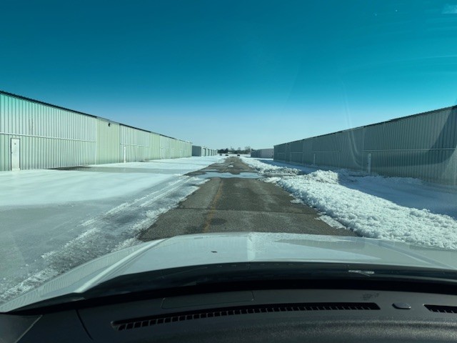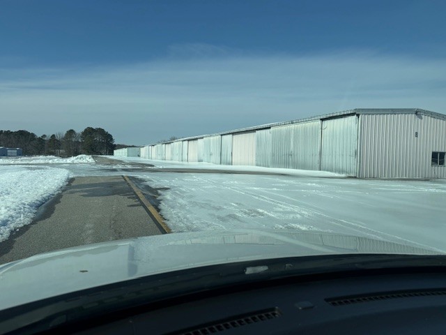 • The T-Hangars and still mostly inaccessible with several inches of ice on the ground and ice sliding off the roofs in sheets, blocking doors.