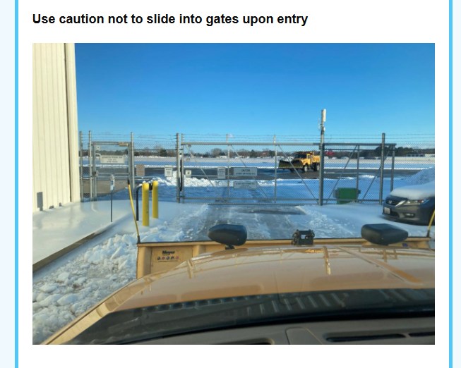 • Use extra caution around the drive-through gates due to ice.