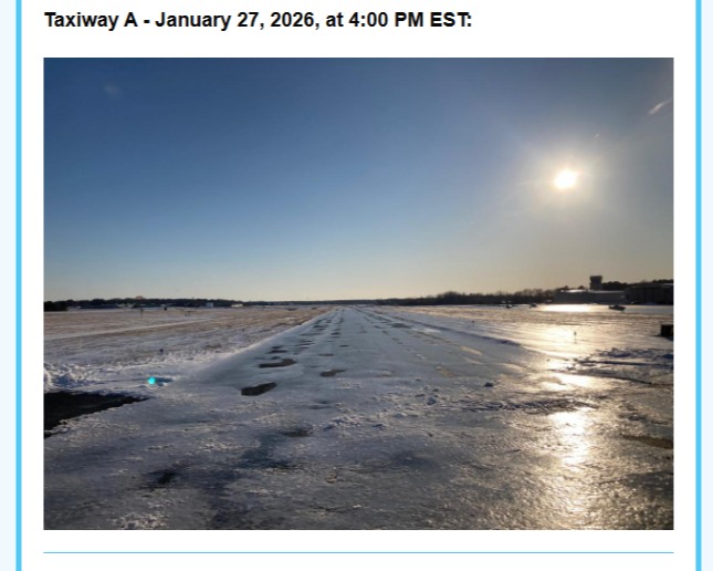 -Runways and ramps are now covered in up to 3 inches of ice with no braking action.